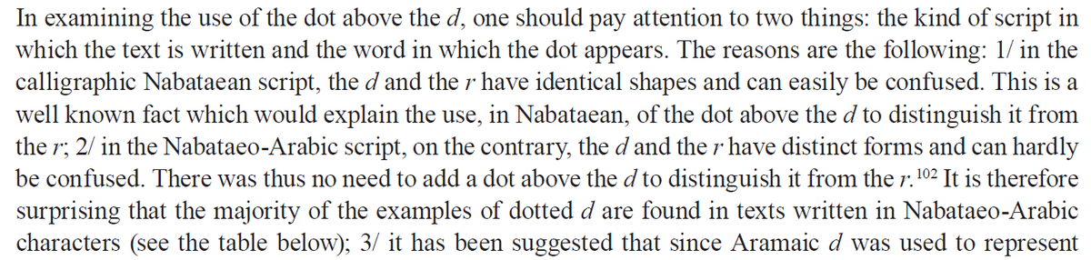 And that is the real mystery: Somewhere in the history of the Nabataean script, the shape of the <r> and <d> demerge. They really seem to have been indistinguishable, but in the centuries leading up to Islam, become distinguished again.