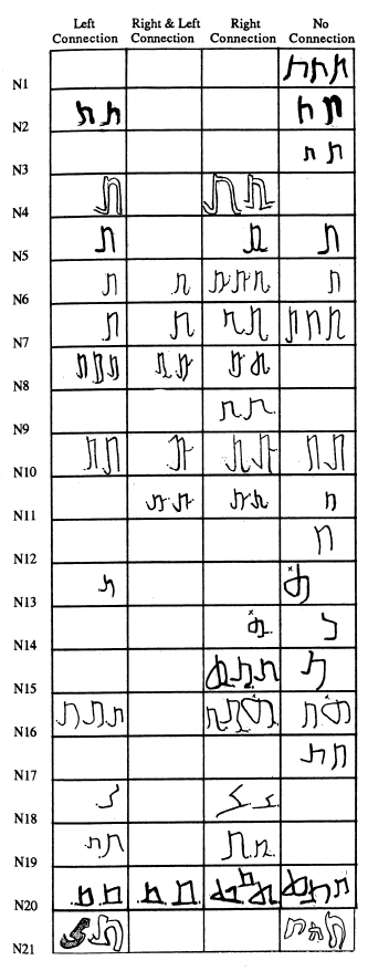This is especially striking because the overall trend of the Nabataean script in this period is to merge more and more shapes with one: