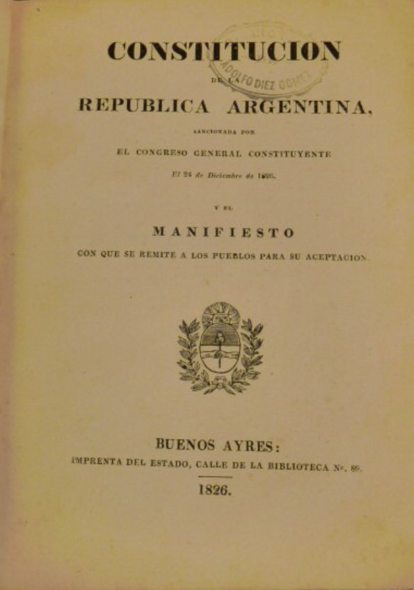 La Constitución sancionada en 1826 proclamaba el sistema representativo, republicano, consolidado en unidad de régimen. El gobierno nacional se organizaba en base al principio de división de poderes. La Constitución fue rechazada por todas las provincias: las misiones enviadas por el Congreso ante los gobiernos de provincia fracasaron.