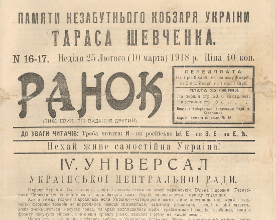En Abril, Fedir Steshko, un teniente coronel de origen ucraniano comenzó a agitar las ideas de autonomía entre los ucranianos del extremo oriente. En Julio, un congreso de independentista comenzó a organizar un estado autónomo “Panucraniano” que prometía fidelidad a Kiev.