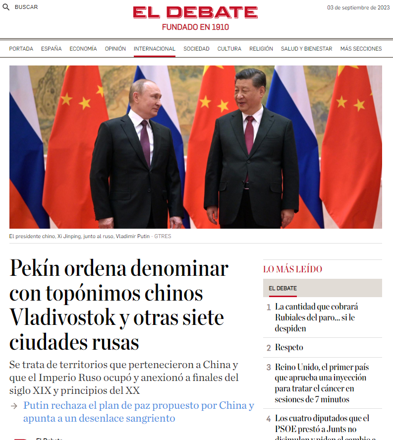 Hay otras señales. En febrero de este año Pekín ordenó que los mapas que mostraran a Vladivostok y otras siete ciudades rusas en esa zona fueran escritos con la denominación China a continuación. Fue una decisión unilateral y Rusia tampoco recogió el guante ante el desafío