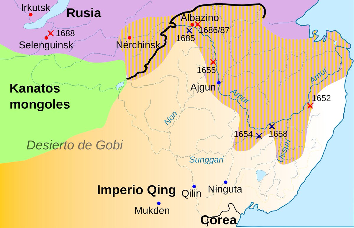 Repasemos los tratados que hicieron que Rusia se quede con una parte importante de suelo chino. Les dejo un hilo sobre la campaña militar que derrotó a la dinastía china Qing luego de la guerra del Opio por si quieren profundizar