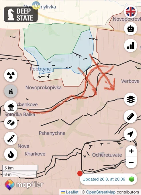 Además de presionar sobre Novoprokopivka, las columnas ucranianas expanden la brecha hacia los flancos en dirección a Verbove en el este y Kopani en el oeste