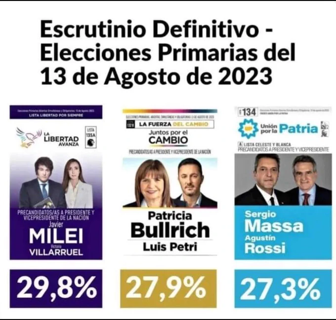 En las primarias votó el 69,62% del padrón de 35,39 millones de votantes registrados. Un 4,47% votó en blanco.