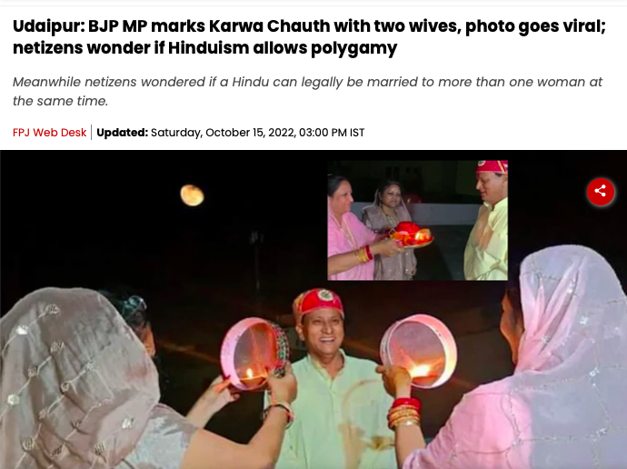 1. Meet Arjunlal Meena. BJP MP from Udaipur. He was seen celebrating Karwa Chauth with his two wives Meenakshi and Rajkumari who are reportedly sisters.