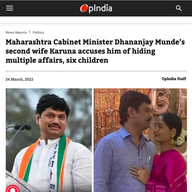 5. Meet Dhananjay Munde. Former BJP leader and now Minister in BJP govt, Maharashtra. (Ajit Pawar faction). His second wife accused him of hiding his 6 kids.