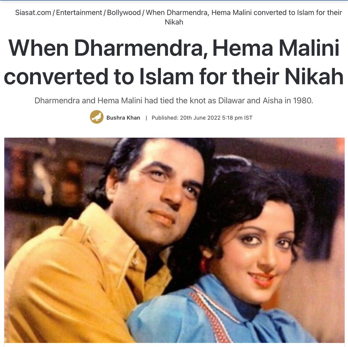 6. Meet Dharmendra. BJP leader and MP (2004-09). In 1979 he and Hema Malini (currently BJP MP) got married, without divorcing his first wife.
