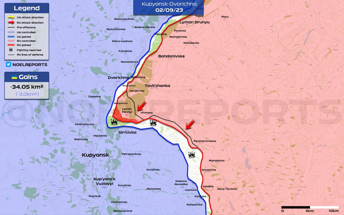 ➡️The AFU is continuing its advance behind the railway tracks north of Kurdyumivka. Russians putting in extra reserves and resist heavily.
