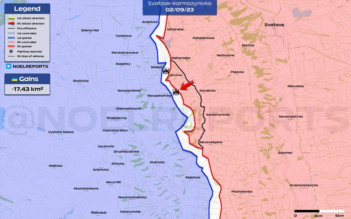 ➡️This front also stalled as fighting only seems to be happening near Novojehorivka. Other axis are quiet.