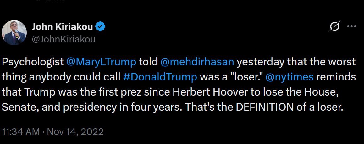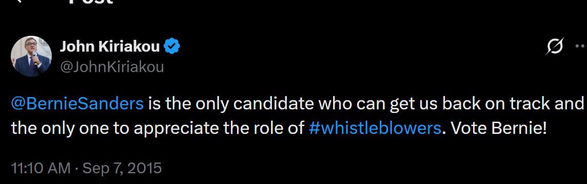 John Kiriakou @JohnKiriakou’s X account is riddled with anti-Trump and radical left rhetoric. He once amplified pro-Islamic, anti-Trump, pro-Muslim Brotherhood and pro-Hamas commentator Mehdi Hasan @mehdirhasan’s comments calling President Trump a “loser.” In 2015, Kiriakou posted on X that he was supporting Bernie Sanders @BernieSanders for president.