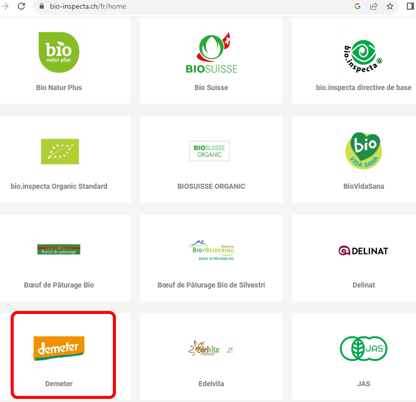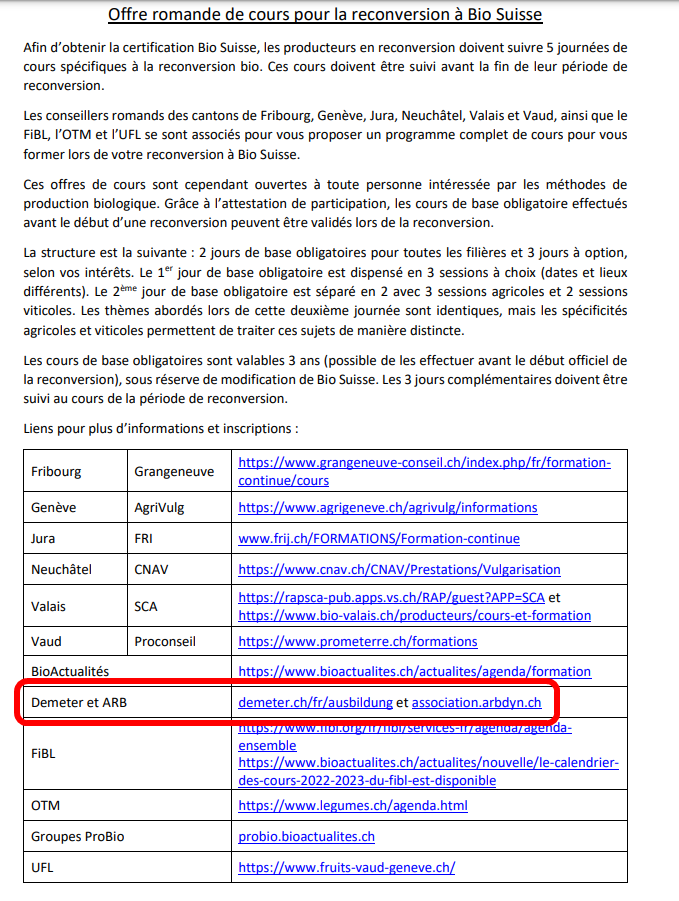 D'ailleurs dans ce document de cette même société, des offres de cours de l'association romande pour la biodynamie (ARB) et Demeter, pour la reconversion Bio des producteurs agricoles : bio-inspecta.ch/docs/d5a7ff489…