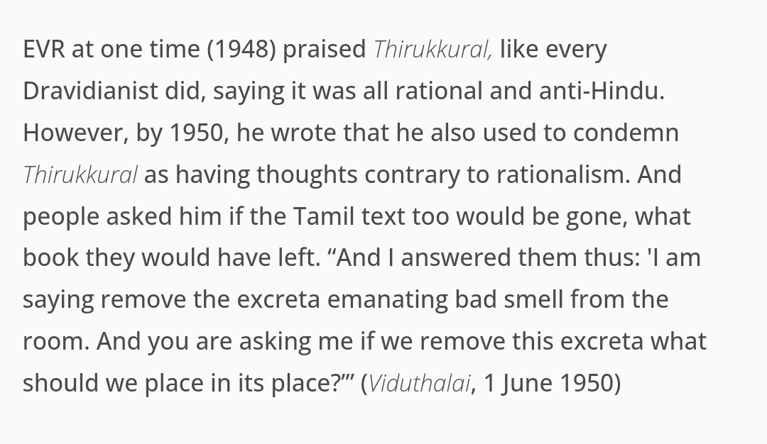 Periyar had a love-hate relationship with Thirukkural and likened it to excreta :