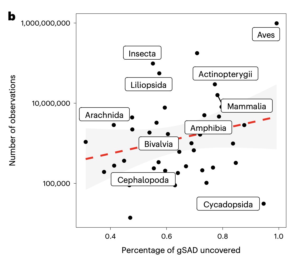 For instance for birds, we have pretty much discovered all species as they are not so many species and there are a lot of birders. In reality we observe the entire SAD every single year at this moment: the number of records of each species is proportional to their abundance❗️13/#