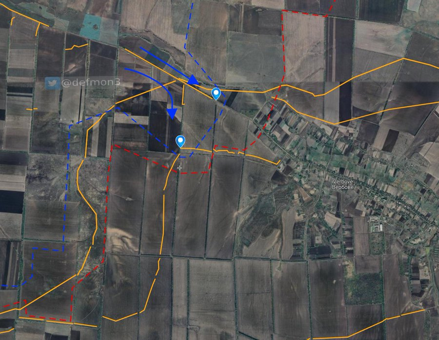 Sur le flanc oriental, le bréchage 🇺🇦 s’opère sur une diagonale Sud-est (#Novoprokopivka) - Nord-ouest (#Verbove)
