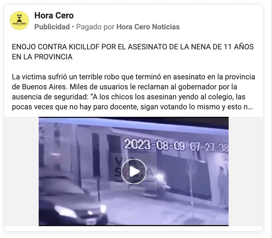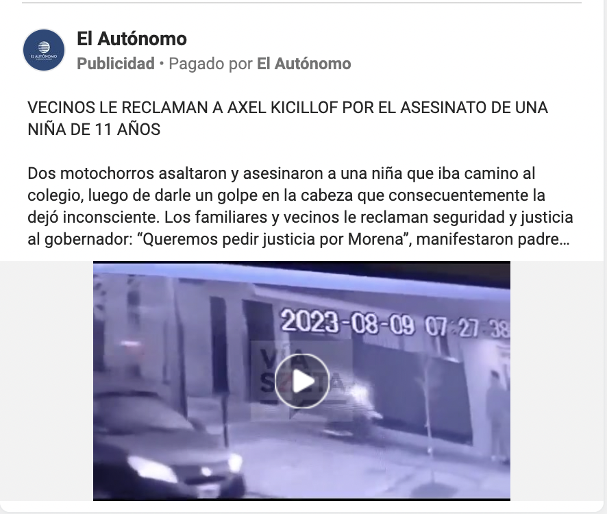 En los sitios también figuran la difusión de noticias específicas de la agenda. Por ejemplo, el crimen de Morena Domínguez, asesinada en Lanús, varios posteos señalan la falta de seguridad en la Provincia de Buenos Aires. Allí se mencionan los reclamos a Axel Kicillof.