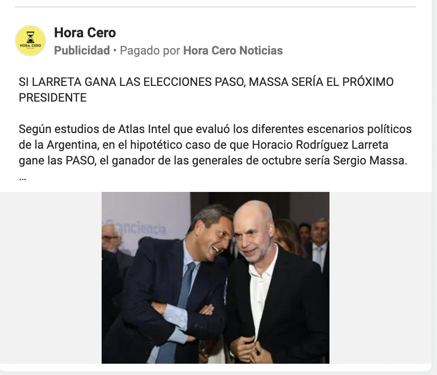 Otro punto a ver son los datos que difunden del jefe de gobierno Horacio Rodríguez Larreta, con notas de difusión de encuestas que lo daban como eventual perdedor frente a Sergio Massa en un ballotage y otras.