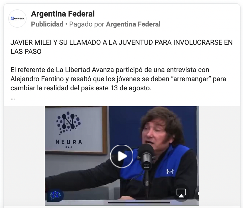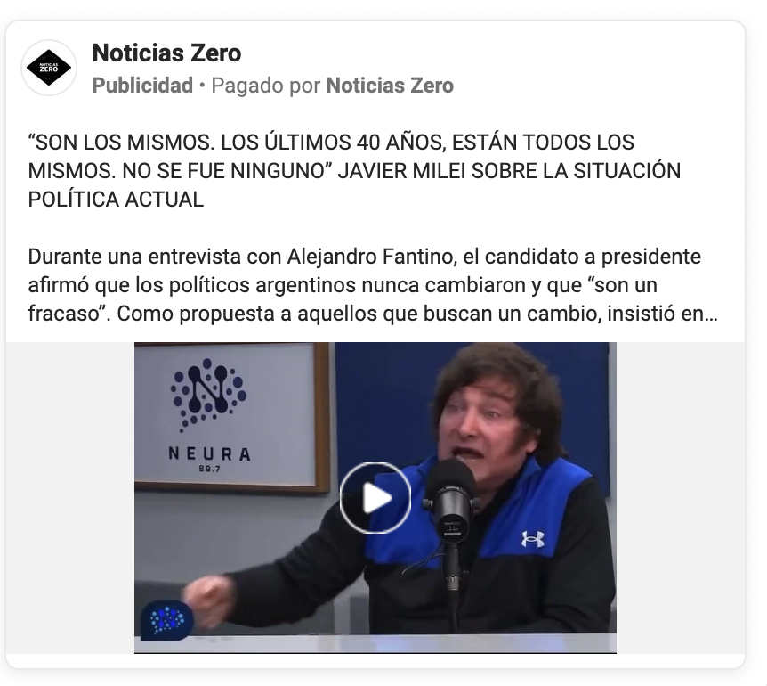 Algunos ejemplos hay acá. Por ejemplo, numerosos sitios destacan distintos pasajes de esta nota a Javier Milei en Neura, casi todos con las mismas imágenes y declaraciones, con distinto título y bajada. Es apenas un ejemplo. Hay muchas más.