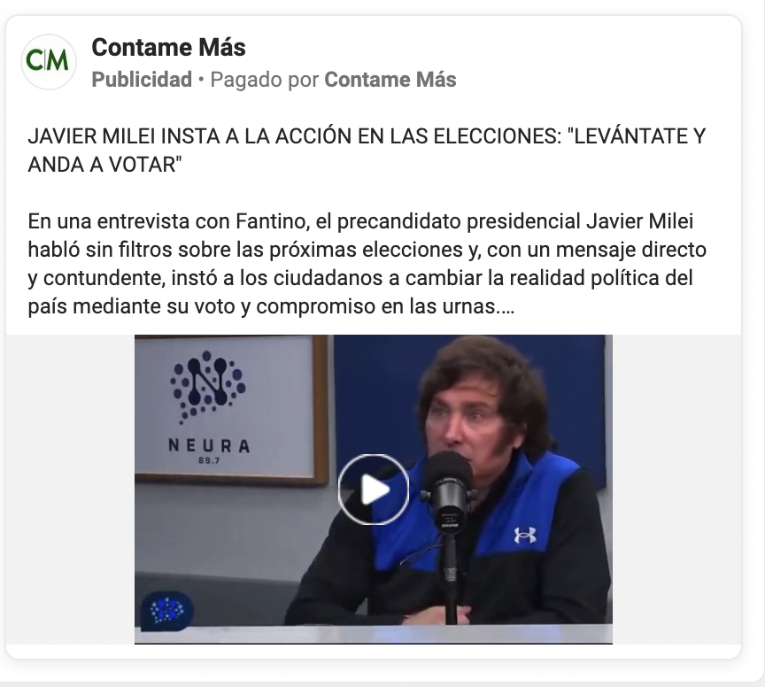 Curiosidad: por fuera de las inversiones oficiales de los candidatos, son de los sitios que más presupuesto invirtieron en los últimos 3 meses. ¿Cómo verificarlo? Van al Ads Library y ahí filtran por nombre de página que menciono arriba últimos 90 días facebook.com/ads/library/re…