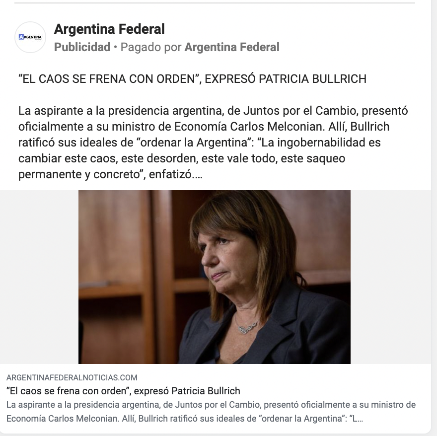 Tras las denuncias cruzadas entre Pullaro y Losada por las campañas de difamación en redes, estuve buceando en Meta en los sitios "no oficiales" que son parte de la campaña y que usan de paraguas sitios "periodísticos" para contar algo a favor del propio y contra el rival