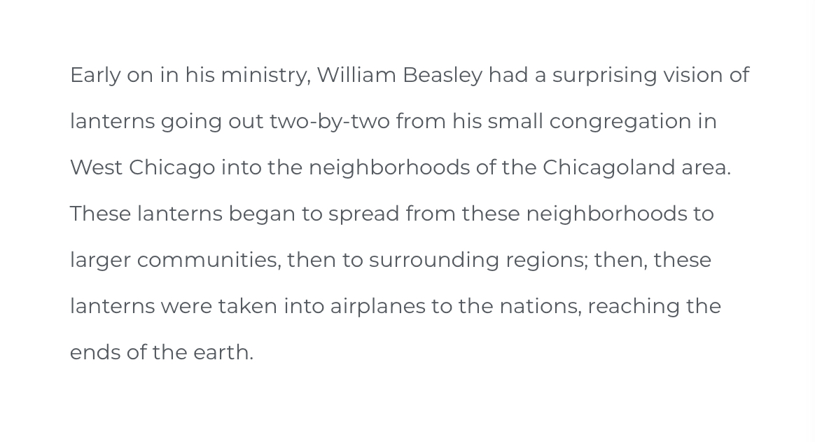 The “Our Story” page on @greenhousemove’s website speaks of founder William Beasley’s vision of lanterns going out two by two from the then-small, now mega-church-sized @ChurchRez.