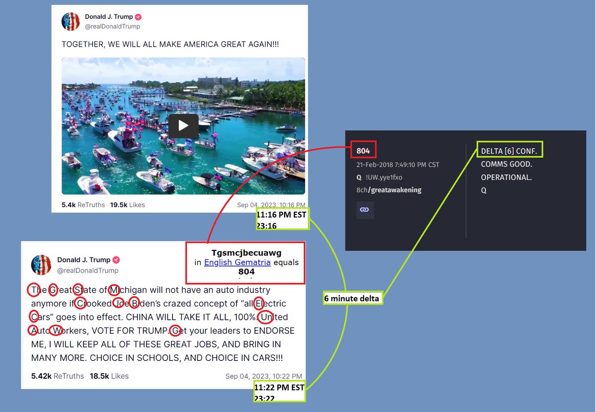 Here's another interesting "coincidence"-- Earlier I posted a breakdown of President Trump's messages from last night on TS that connected back to Q Drop 804.