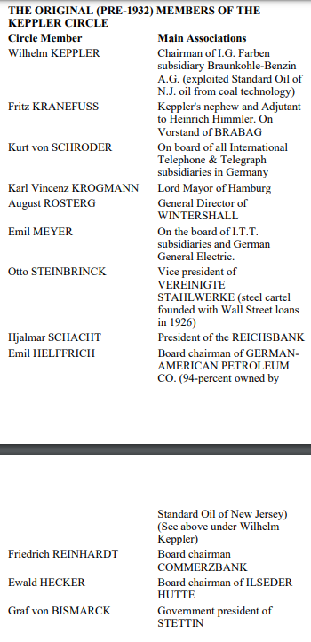 6) It isn't necessarily true that Sutton's theory rests on the financing the Nazis received from Wall St. after Hitler assumed power. Sutton provides ample evidence that major German capitalist leaders connected to Wall St. funded Hitler before 1932, and that moreover, major German industrial cartels, such as I.G. Farben, I.T.T., and others were startups created by JP Morgan and Wall St.