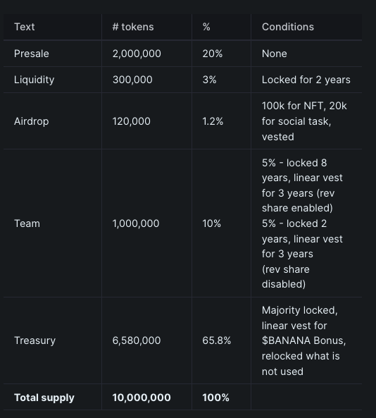 3/n Airdrops: Banana Gun includes two airdrops. NFT holders will receive a 1% airdrop, while participants who complete social tasks will receive a 0.2% airdrop. The vesting period for these airdrops is two months on a linear schedule. #Airdrop #CryptoRewards