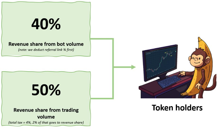 13/n Thoughts: The reward and burning mechanisms of Banana Gun's token seem well-designed, offering potential benefits for token holders. However, the actual income generation capability and sustainability of the platform still need to be validated through real trading. #Bot
