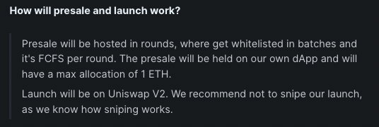 2/n PreSale: The presale raise targe is 800E, with a max allocation of 1E. The presale and launch price are set at $0.65. The starting market cap stands at $1.56m, with an FDV of $6.5m. The presale consists of four rounds with no vesting. #Presale #CyptoLaunch