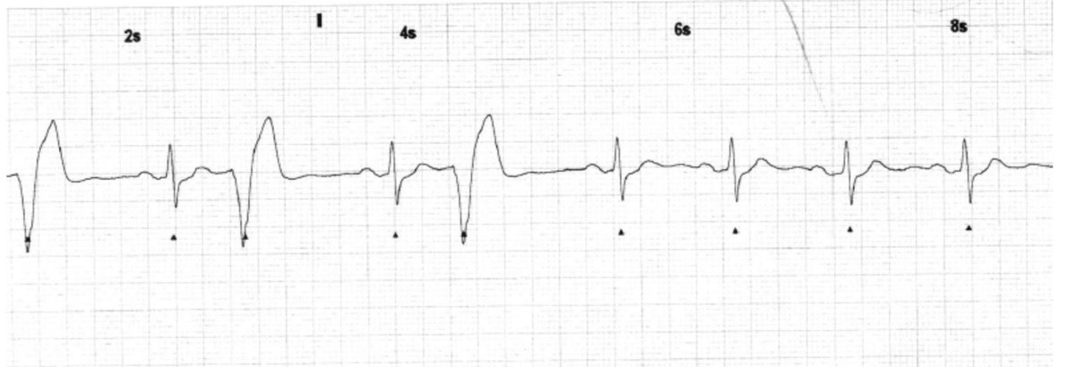 nach 120 J zeigte das EKG folgenden rhythmus: