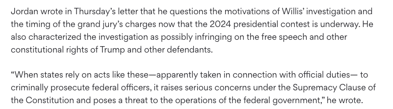 All of this is in response to a letter Jordan sent Willis last month. Jordan wants to determine whether Willis coordinated with DOJ or the White House as part of her inquiry.