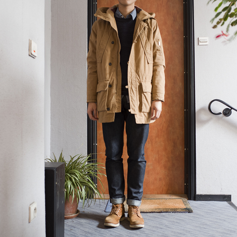 in this way, you can see how two adjacent aesthetics (tailoring and workwear) play well with each other. and by staying within some basic colors (e.g., blues, browns, olives), it's easy to coordinate. same pants, shirts, and sometimes shoes, but different jackets and thus outfits