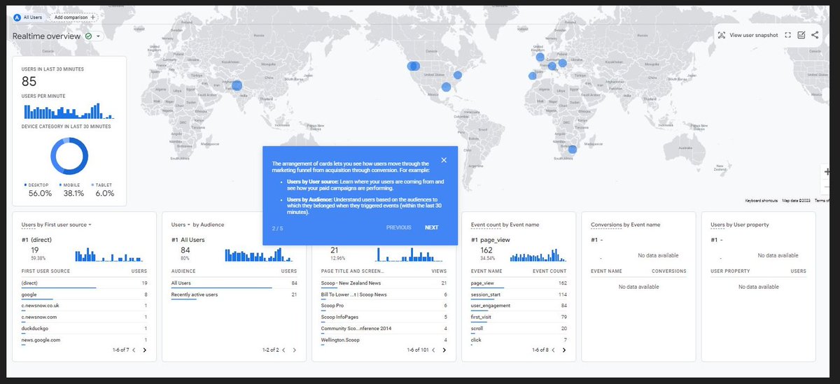 Our previous sampled location data analytics whch I have posted occasionally before, show that @ScoopNZ has readers nearly everywhere except Togo, Svalbard and Greenland - but in many cases (e.g. pacific island states) the number of users is shown as "1".