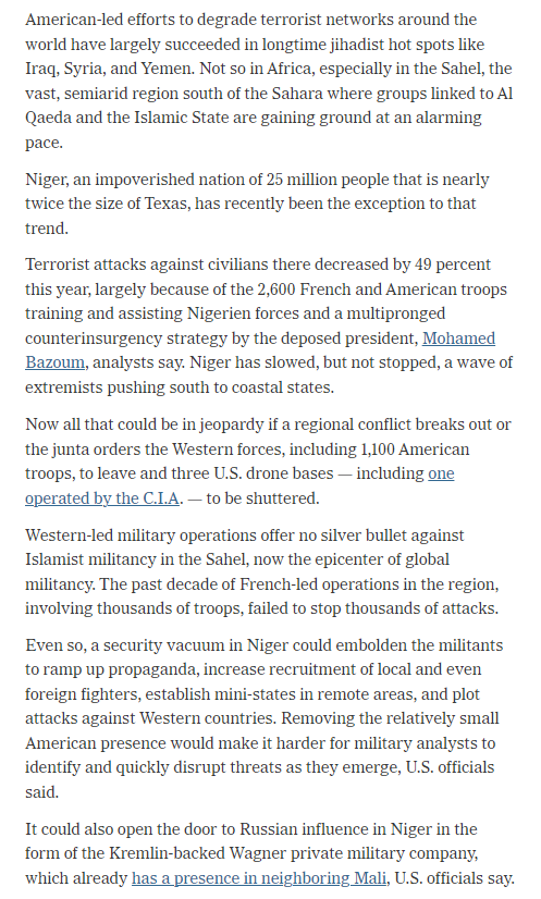 Meanwhile the UN Presidency of UNSC for August still hasn't published a forecast program of work - which is odd. And no meetings on Niger are scheduled, nor have any been held & France and the US appear to be not getting on well - based on reports in French Media.