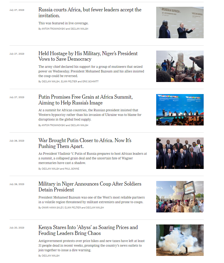 The @NYTimes has been covering this war closely from the outset though including a brace of stories about the Russia -Africa summit. Which was certainly dramatic but not particularly well attended.