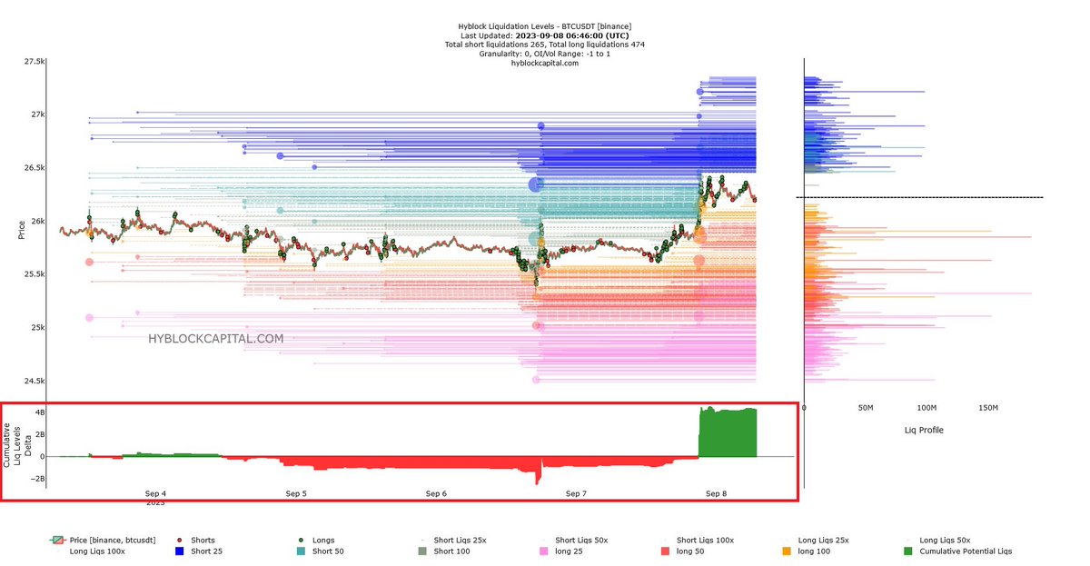 Cumulative Liquidation Levels is represented in BILLIONS, of LONG and SHORT LIQUIDATIONS.
