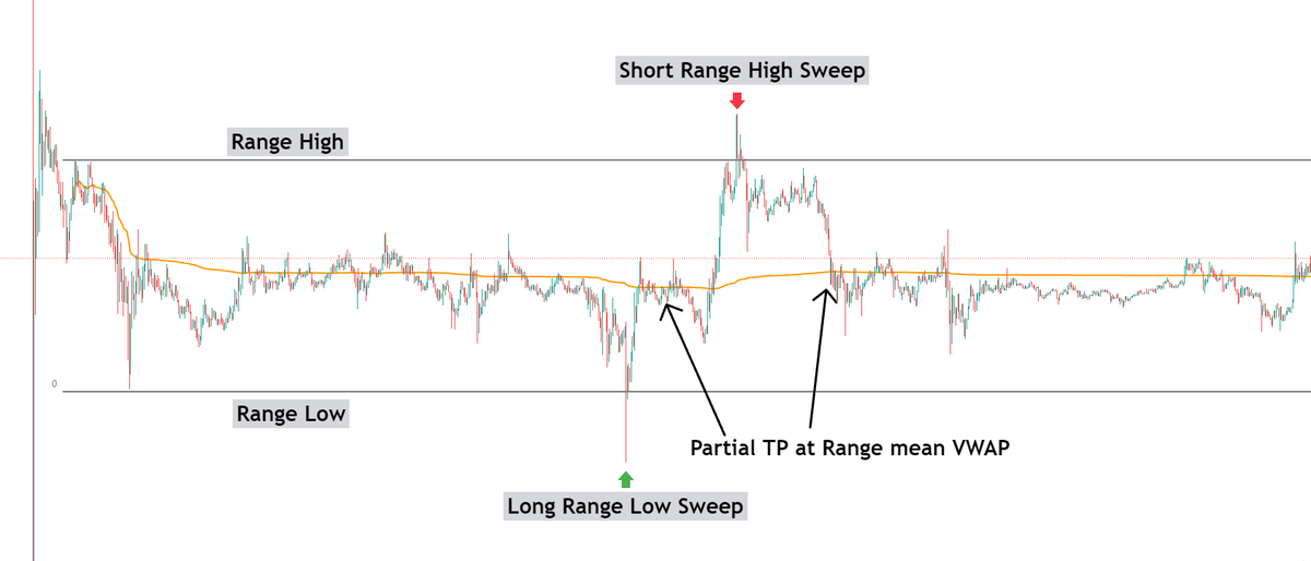 This is a more nuanced setup where more confluence is needed. I mostly scalp trade the range on 1m TF when this happens