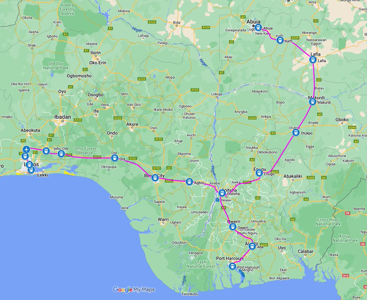 2. Yellow - Abuja Central to New Nyanya 22km+ a 6km Karshi branch.