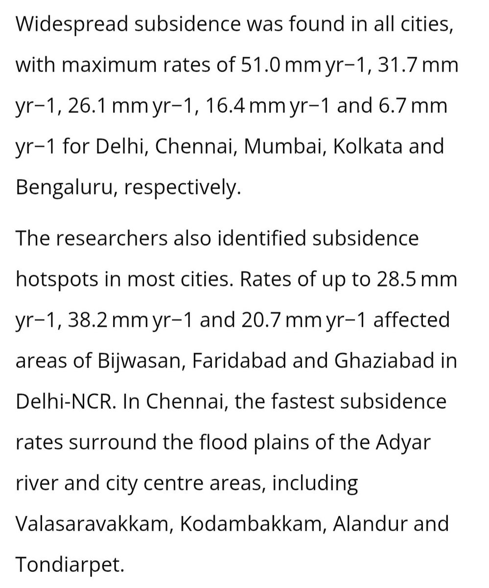 " fast-growing Indian megacities — Delhi (National Capital Territory, NCT), Mumbai, Kolkata, Bengaluru and Chennai, are exhibiting widespread subsidence"
