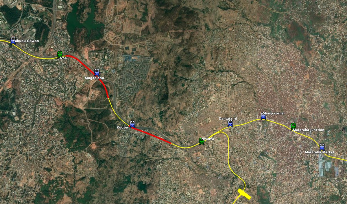 The New Nyanya line will be mostly elevated, but will require 2 tunnels to traverse the Asokoro escarpment at acceptable 4% grades.