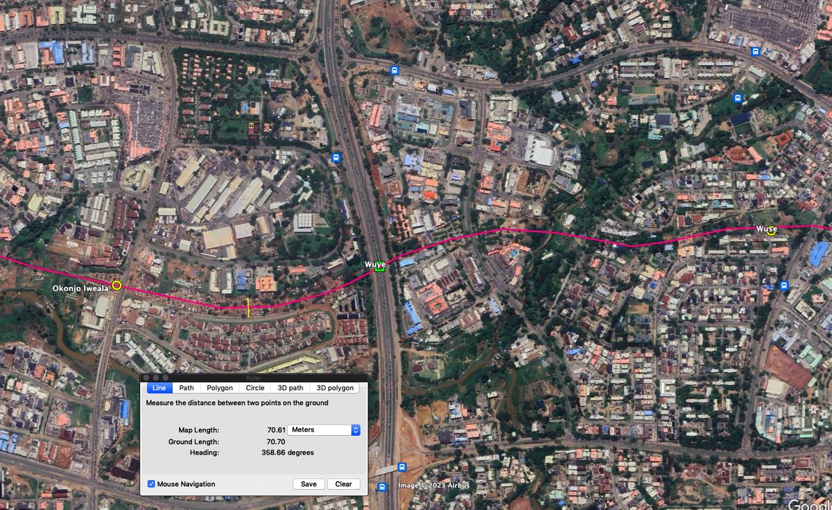 The #3 priority line is the Gwarinpa line (Teal) runs through the existing 60m wide reserved right of way and can be built on an embankment with concrete retaining walls.