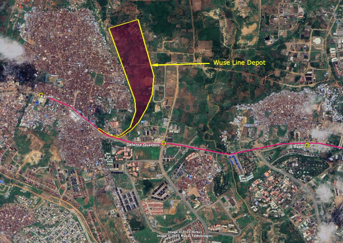 The depot for the Wuse line (Red line) can be located between Karmo station & Defense Quarters station.