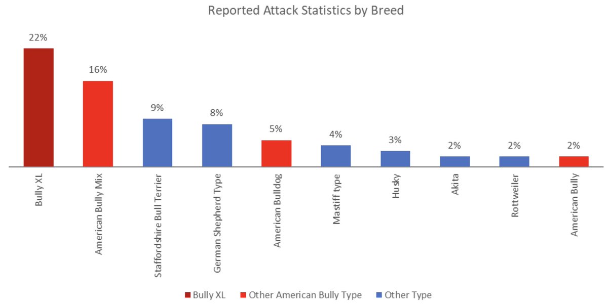 But it's not just deaths, the American Bully leads in attacks.