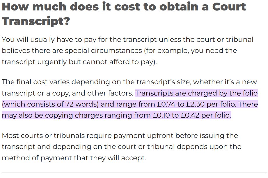 Instead of being given access to a redacted audio recording, or an AI transcription, or their own choice of transcriber, victims are forced to pay between £0.74-£2.30 for every 72 words!