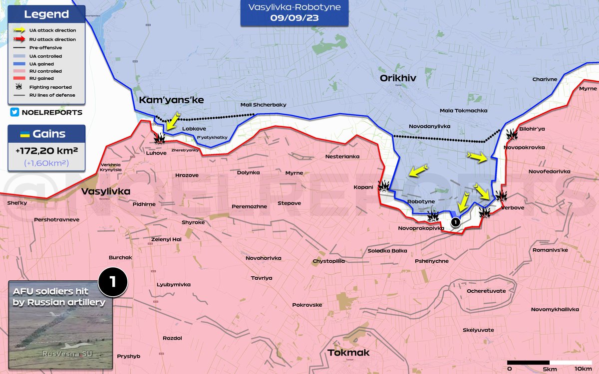 ➡️AFU has expanded their zone of control east of Novoprokopivka, coming very close to this section of the Surovikin line