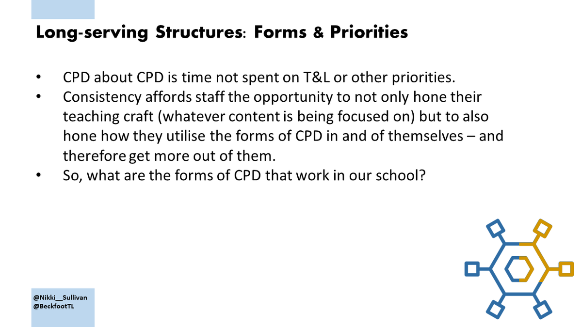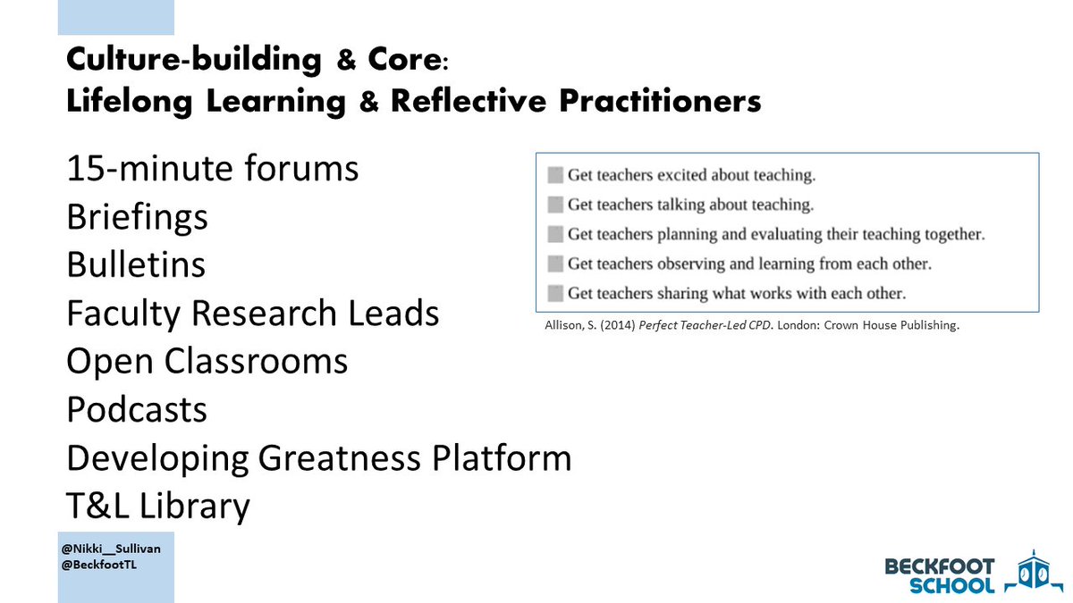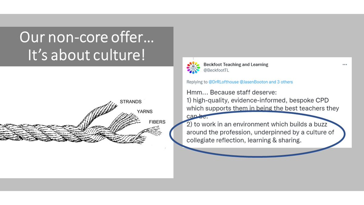 When building a culture of professional learning, I think building a core offer, within directed time, that colleagues can see is helping them improve is the most important thing. That being said, there are ways to build around this core offer... 16/