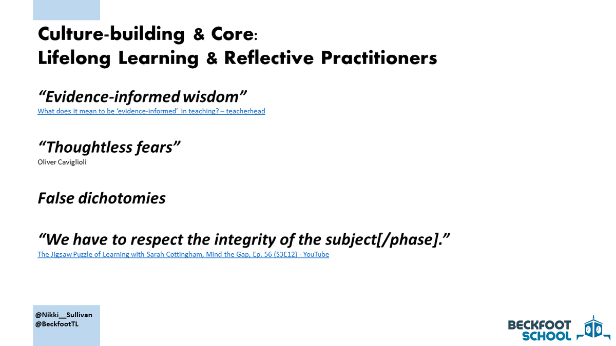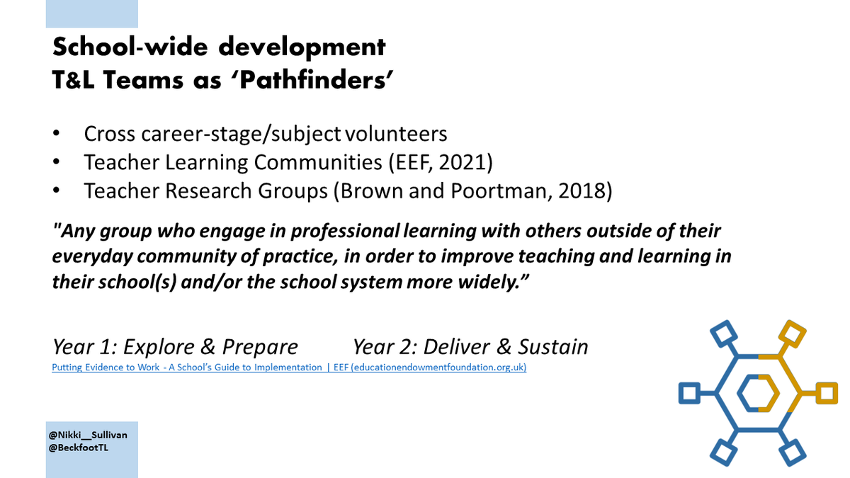 ... We are giving our teams time to engage in the research and evidence from their subject areas, mirroring the approach we take on a whole-school level. 8/