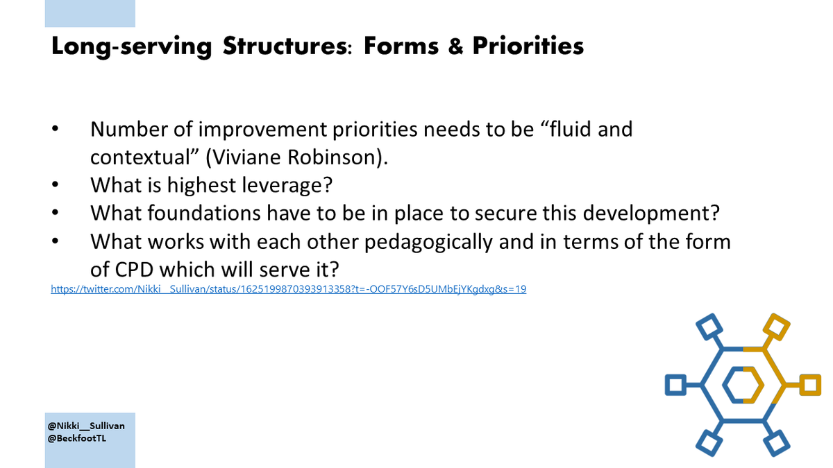 We also need to consider how we build time for school, faculty/phase and individual priorities. Where leaders are diagnosing areas for development effectively, there will be a through-line. However, teams and individuals will have bespoke areas they need time to attend to. 5/