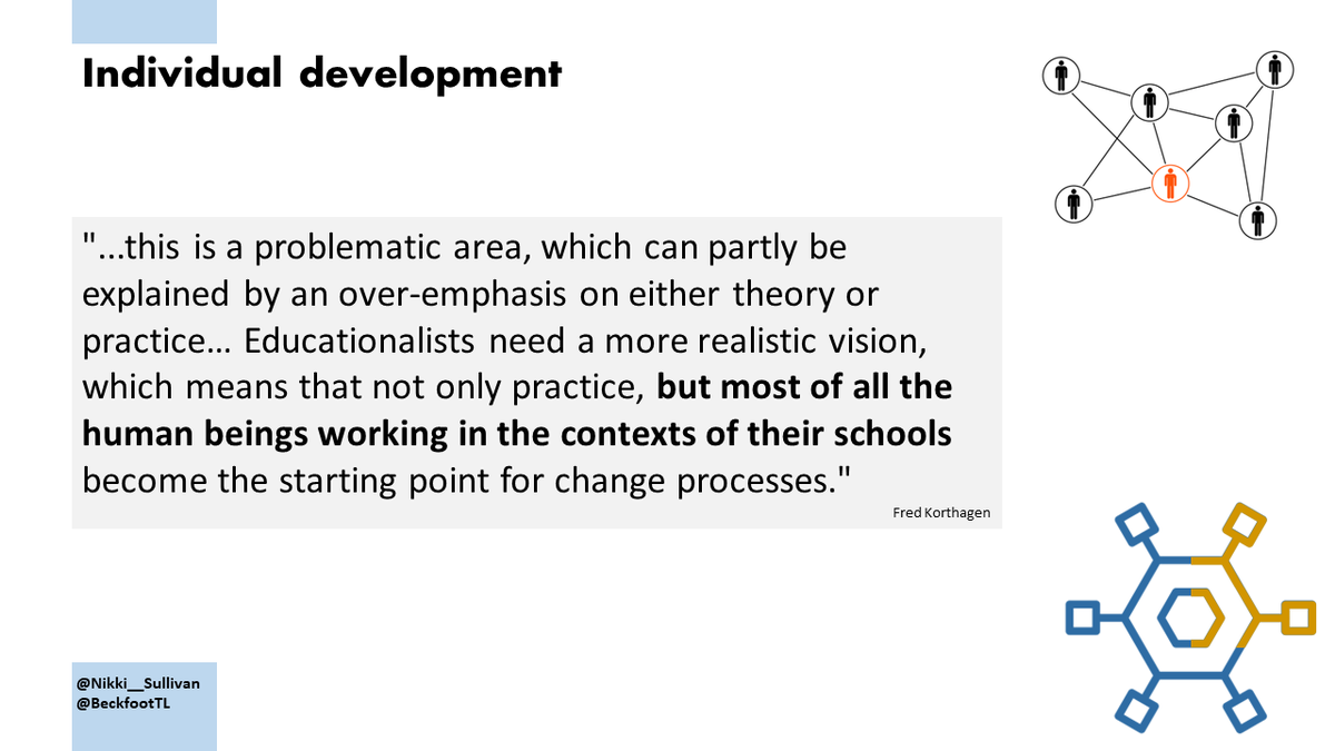 @JGProfDev & @Josh_CPD delivered a brilliant Session 1, speaking about the importance of engaging in both theory & techniques and the entitlement of high-quality CPD for all staff. Reminded me of this quotation from Korthagen which I love. Theory, techniques, and people. 10/
