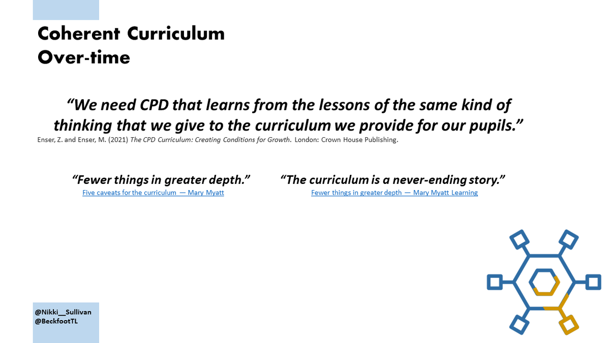 There’s no better book when considering your CPD Curriculum than that by @greeborunner and @EnserMark. And, beneficially, this concept provides a way in to so much rich curriculum thinking… “fewer things in greater depth” from @MaryMyatt being one example. 11/